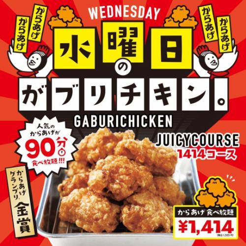 毎週水曜はからあげの日!当店一番人気「からあげもも」が90分食べ放題★お得なジューシーイベントをお見逃しなく!※お席は120分制です。